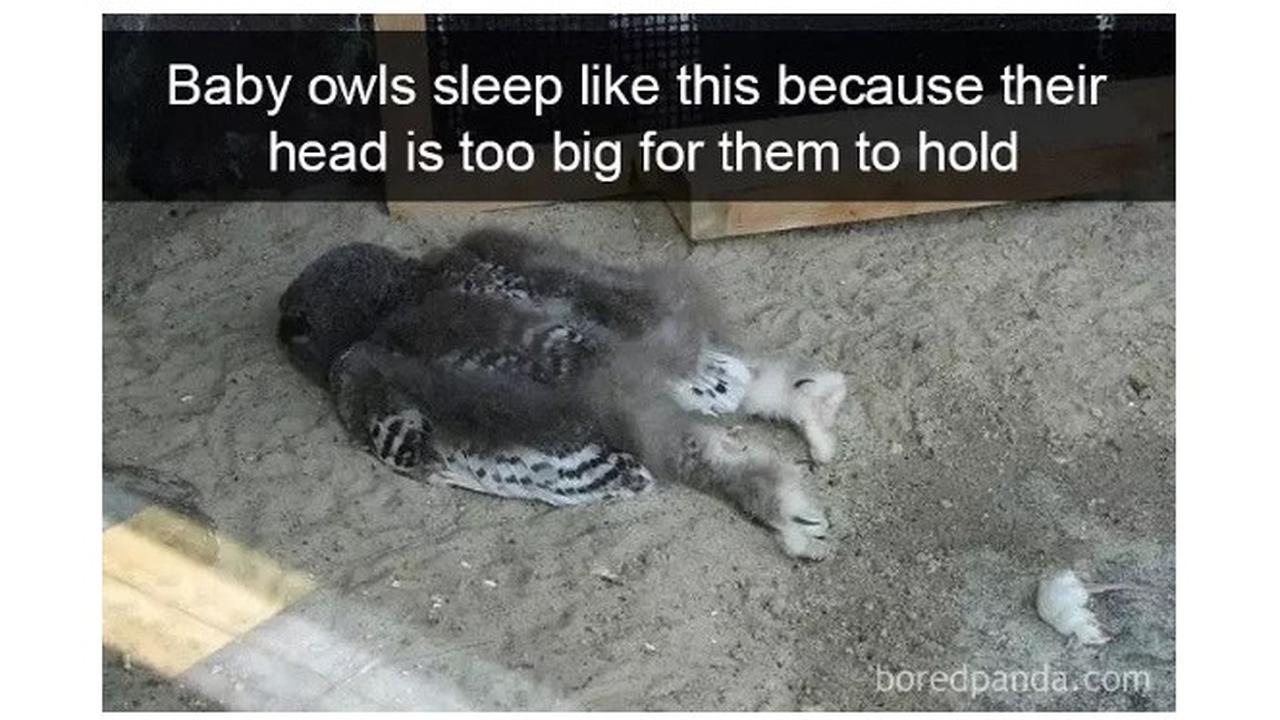 1. Merasa kepalanya berat, bayi burung hantu tak mampu mengangkatnya