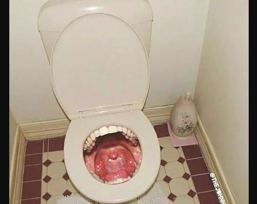 Gimana, dijamin bakalan ngeri deh bab di kloset bermotif gambar bagian dalam mulut ini. Memang sih, klosetnya beda daripada yang lain. Tapi yakin nih, bakalah betah di dalam sini?