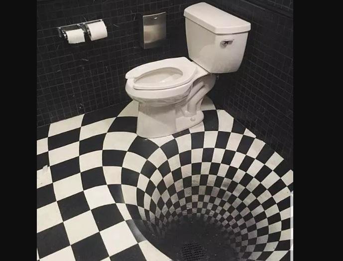 Untuk yang ketiga ini, dijamin kamu bakalan pusing deh! Soalnya, penampilan lukisan 3 dimensi pada lantainya membuat kamu seakan-akan berada di pusaran pembuangan air kotor.